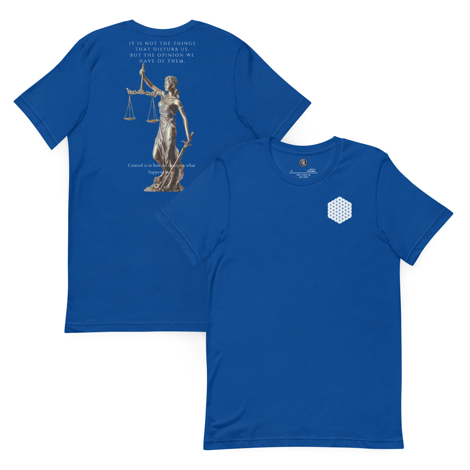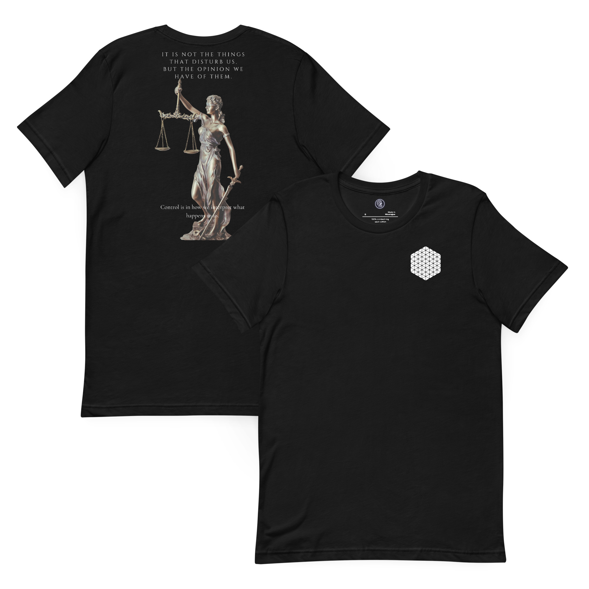 Esta camiseta está diseñada para recordarte que no son las cosas en sí las que te alteran, sino la opinión que tenés sobre ellas. Suave, ligera y con la elasticidad justa, acompaña tu día a día mientras entrenás tu manera de interpretar lo que te sucede.